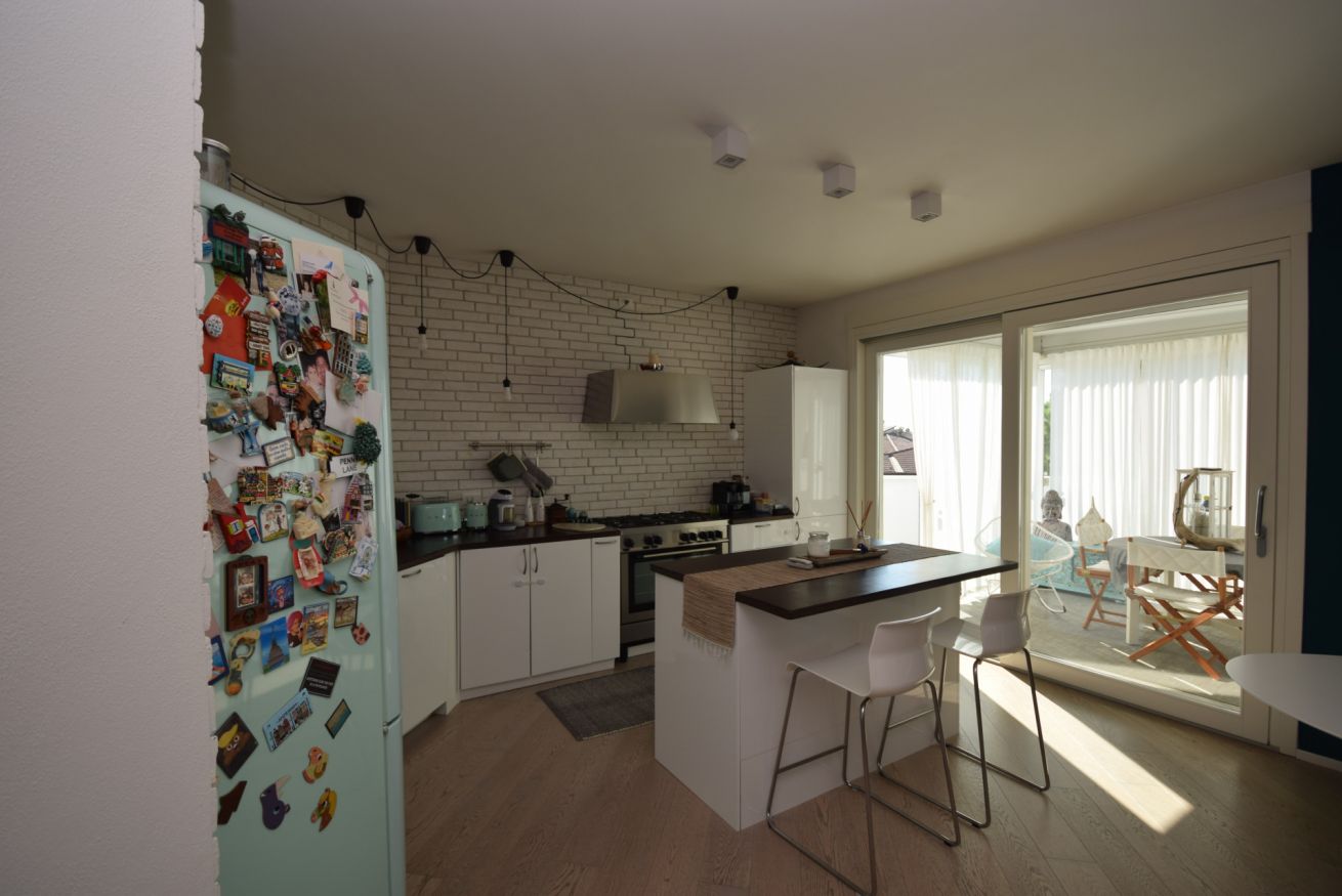 L’ingresso si apre su una luminosa zona giorno open-space, dove un ampio soggiorno si fonde armoniosamente con la cucina a vista, creando uno spazio ideale per accogliere e vivere ogni momento della giornata.