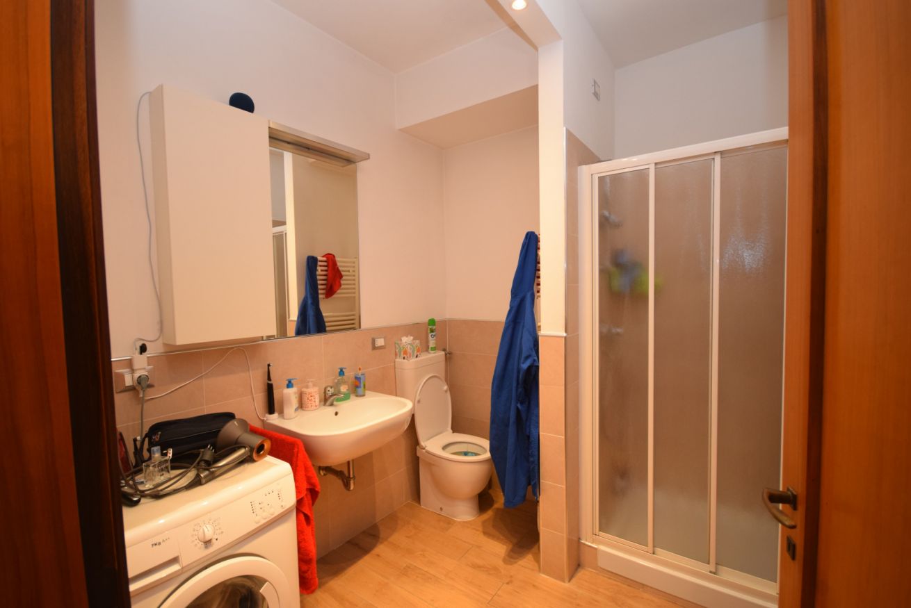 La distribuzione interna è razionale e funzionale: l’ingresso accompagna al soggiorno e alla cucina separata, per proseguire alle due camere da letto e ai due bagni, una configurazione che risponde perfettamente alle esigenze del mercato della locazione e contribuisce alla stabilità del rendimento. La presenza di una cantina di proprietà aggiunge un ulteriore spazio accessorio, sempre utile e richiesto, e c’è la possibilità di acquistare a parte un posto auto.