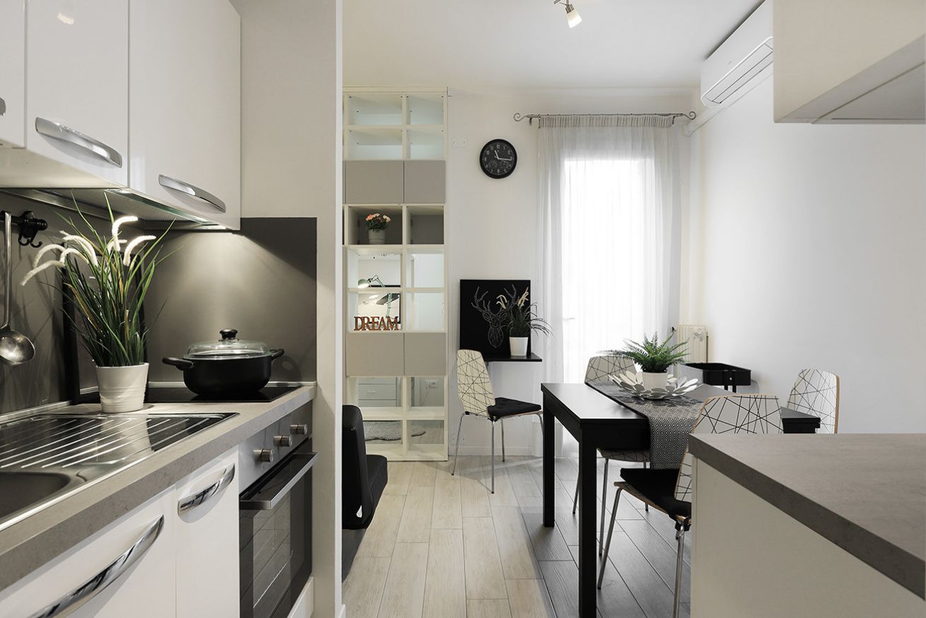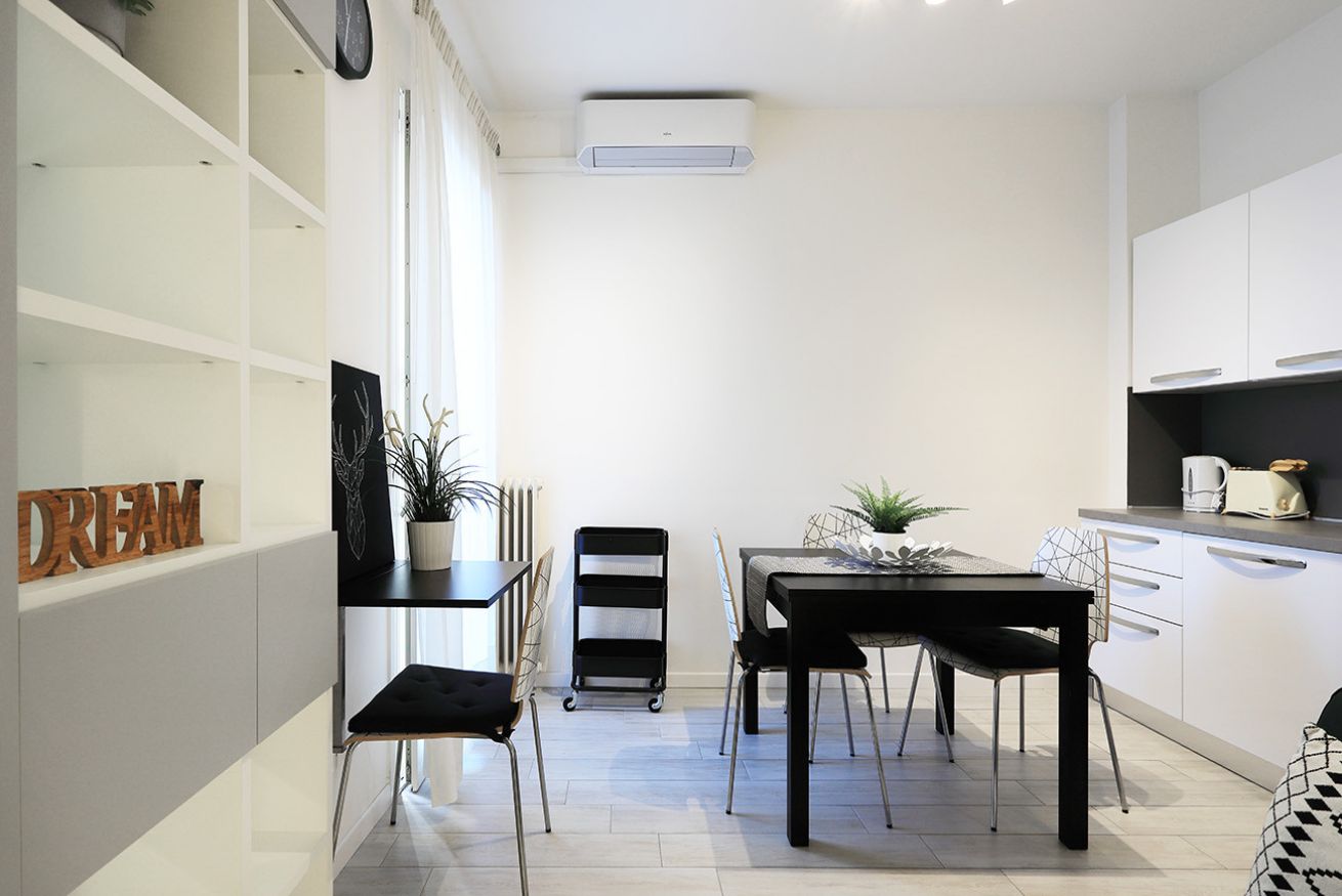 Rif 1407 S.Sofia - Ospedali: Moderno monolocale completamente arredato, comodo a tutti i servizi e all'ospedale. L'appartamento è situato al primo piano senza ascensore di un condominio con poche unità ed è composto da: ingresso, zona giorno/notte con angolo cottura, divano letto e letto alla francese soppalcato, bagno con doccia ed un piccolo terrazzino. Dispone di riscaldamento centralizzato e aria condizionata. Libero dal 1 gennaio 2026.