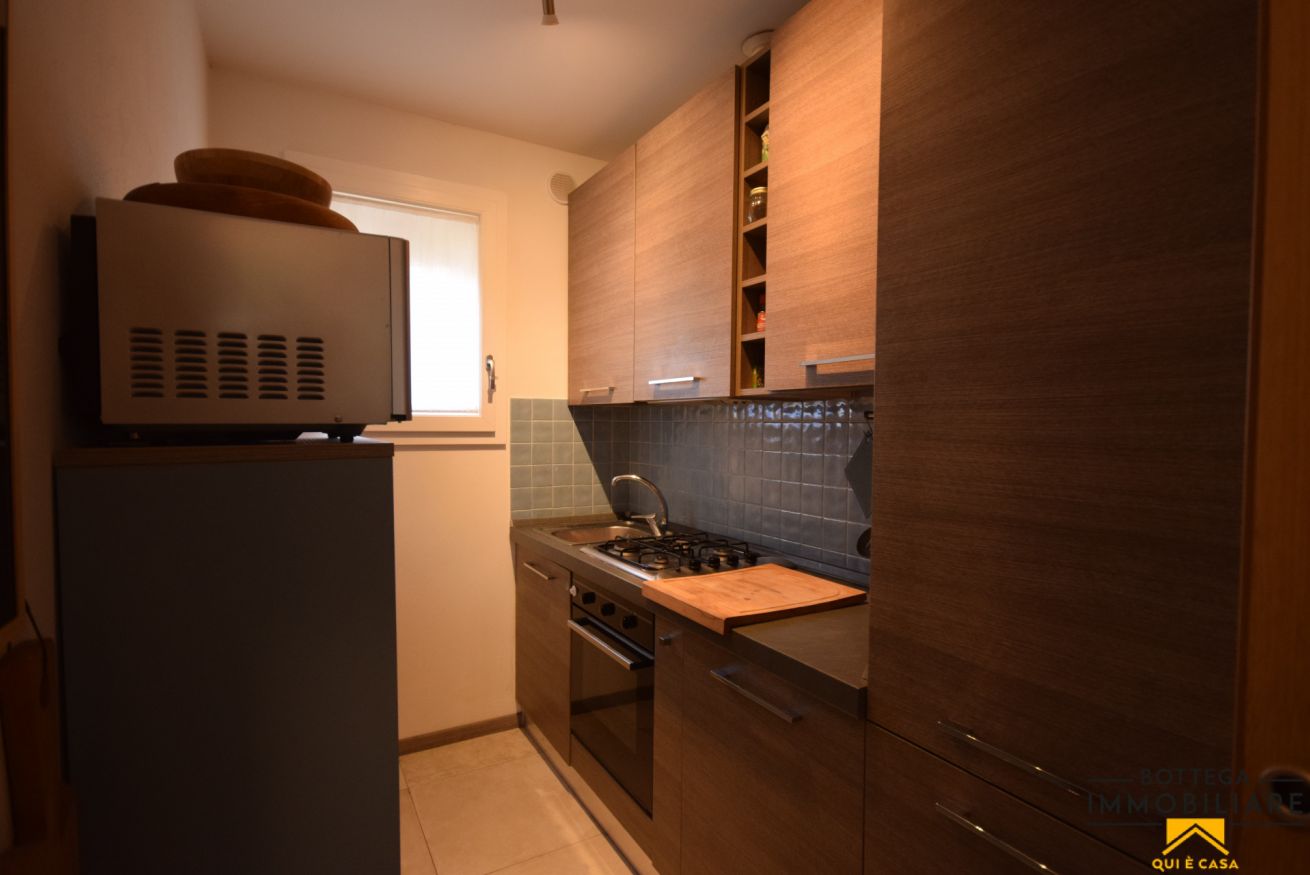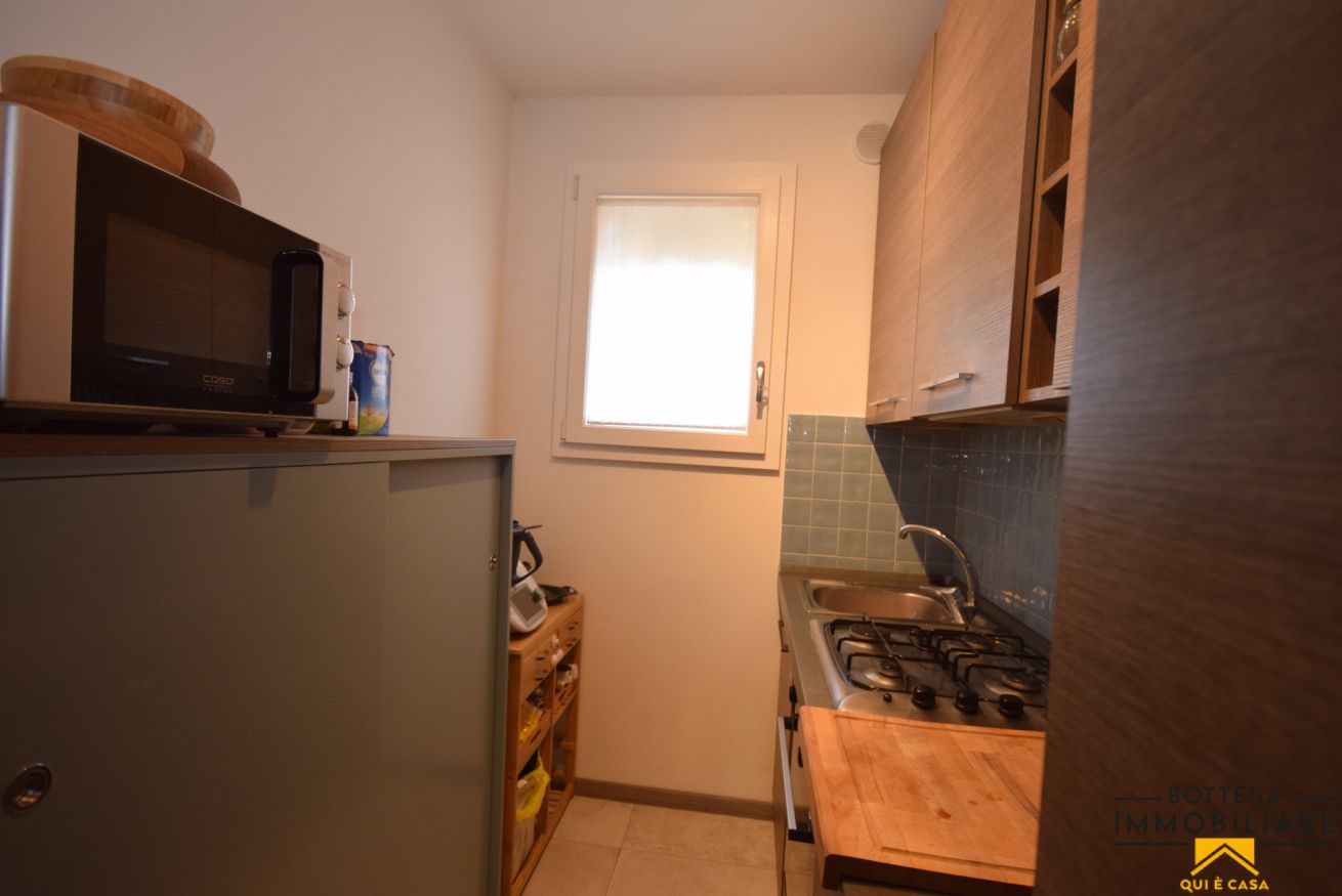 Troviamo poi un comodo cucinotto finestrato, completamente arredato. La zona notte ospita due camere matrimoniali spaziose e ben arredate, mentre il bagno finestrato, moderno e funzionale, completa la distribuzione interna degli ambienti.