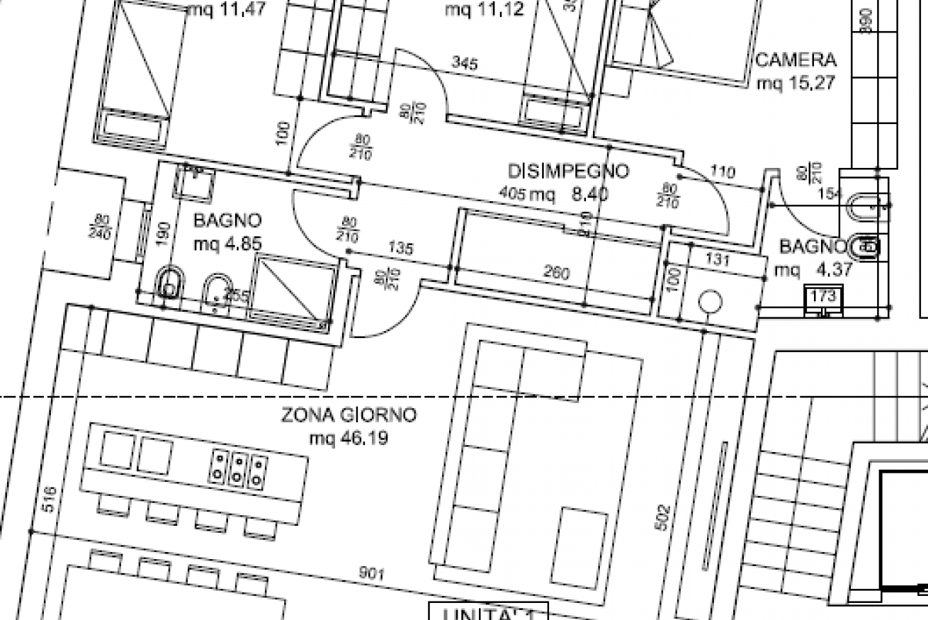 I due bagni assicurano praticità e comfort nella gestione degli spazi domestici, mentre le tecnologie impiantistiche di ultima generazione garantiscono un elevato livello di benessere abitativo. Il riscaldamento a pavimento diffonde un calore uniforme e piacevole in tutta la casa, mentre la climatizzazione autonoma permette di mantenere sempre la temperatura ideale in ogni stagione.