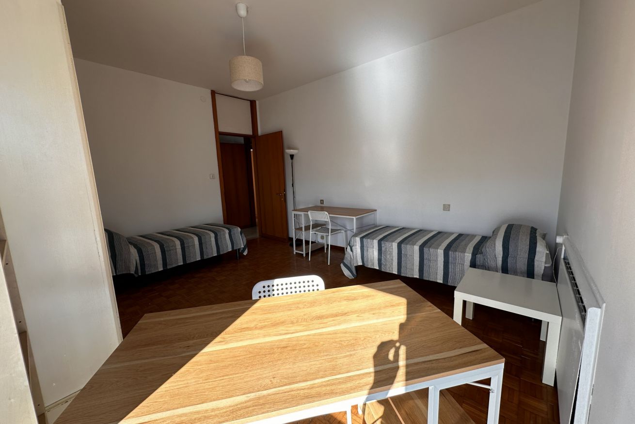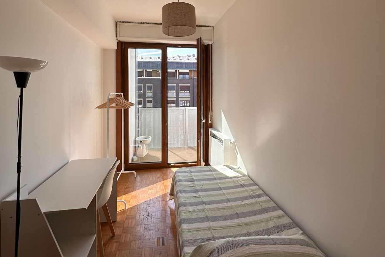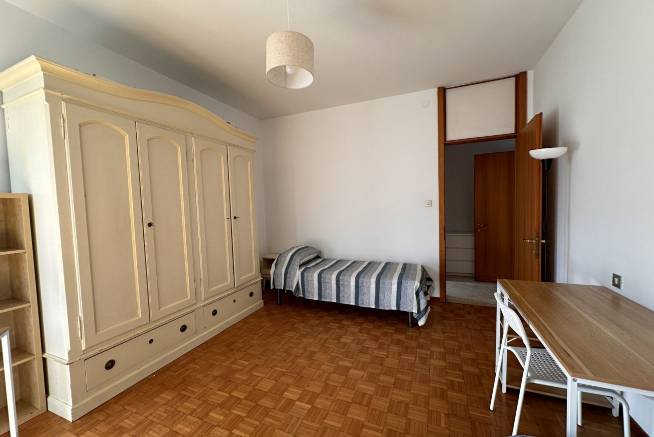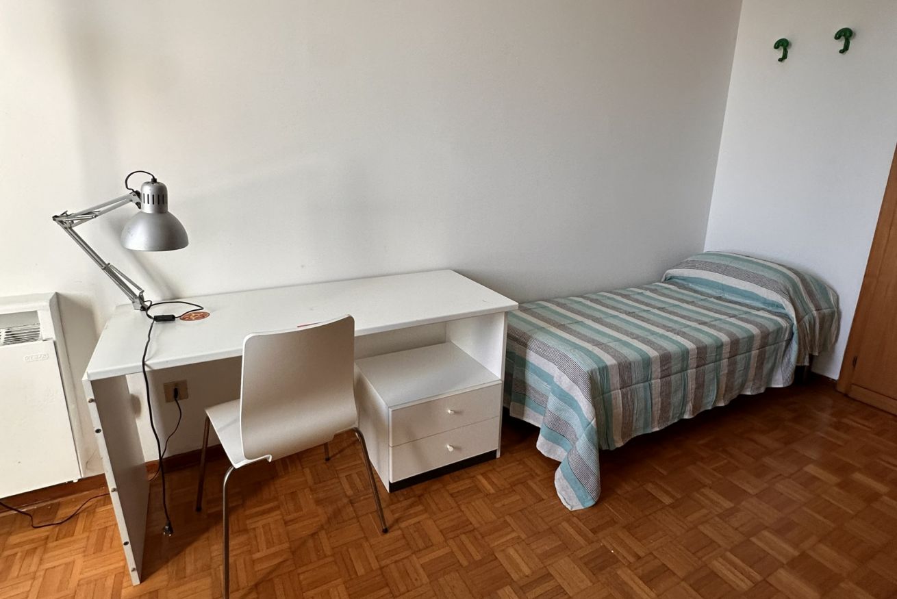 Siamo al 7° piano con ascensore in un bel condominio con portineria, recentemente rinnovato: contesto curato e tranquillo, ideale per studiare ma anche per vivere bene la quotidianità.