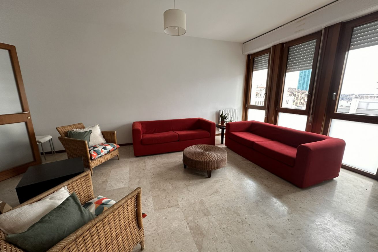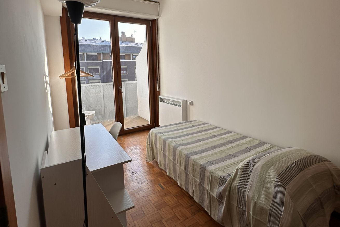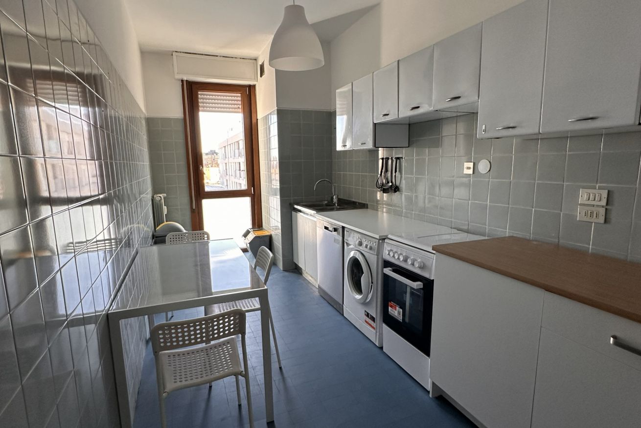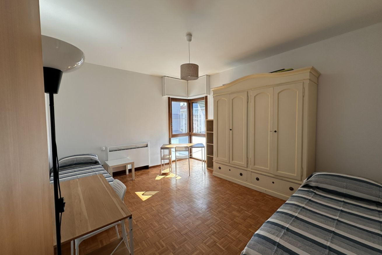 Siamo al 7° piano con ascensore in un bel condominio con portineria, recentemente rinnovato: contesto curato e tranquillo, ideale per studiare ma anche per vivere bene la quotidianità.